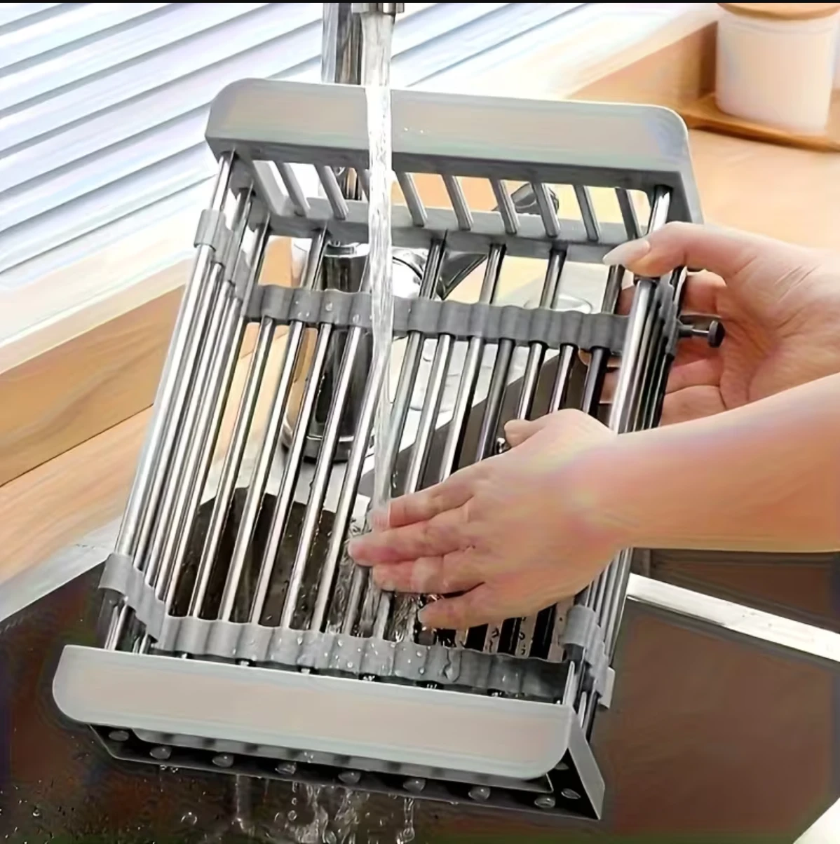 Retractable stainless steel shelf and drain basket for over the sink. It is suitable for 5 scenarios. The kitchen utensils are foldable. with a multi-layer design, it enables efficient washing and air-drying. It is a dish drain rack., Kitchen